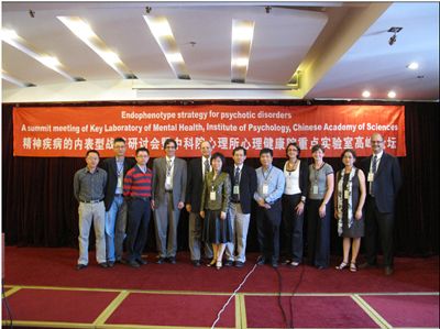 10月11日至13日,由中国科学院心理健康重点实验室和神经心理学与应用认知神经科学实验室共同主办的“精神疾病内表型战略研讨会暨中科院心理健康重点实验室高峰论坛”在京召开。会议由中国科学院心理健康重点实验室陈楚侨研究员主持。耶鲁大学医学院David Glahn教授、英属哥伦比亚大学Bill Honer教授、香港大学Pak Sham教授、哈佛大学医学院Bill Stone教授、伦敦精神病学研究所Paola Dazzan博士、香港大学Grainne McAlonan博士、波士顿的Xaolu Hsi博士、香港的Eric Cheung博士以及部分国内学者和临床工作者应邀参会。此次研讨会得到国家973计划项目(2007CB512302)的支持。