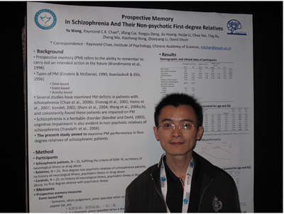 中国科学院心理健康重点实验室神经心理学和应用认知神经科学实验室(NACN)陈楚侨研究员带领他的团队成员王亚和黄佳博士参加了会议。会上,陈楚侨陈述了关于精神分裂症患者软体征的行为与脑成像的数据,黄佳陈述了神经认知和快感体验对精神分裂症患者康复功能存在的潜在影响,王亚陈述了他在精神分裂症患者一级未发病家属样本中前瞻记忆缺损的发现。