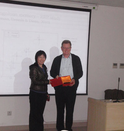 报告会上,John C Dunn教授通过自己论文中的实际例子,向听众介绍了State-Trace Analysis如何应用于不同理论模型的比较,从而可以甄别出更适合于现实数据的理论模型。与会的师生就State-Trace Analysis的技术展开了热烈的讨论。报告会后,傅小兰所长代表心理所向John C Dunn教授赠送了纪念章。