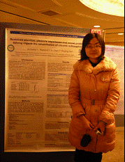 黄佳展示其关于持续性注意、快感体验和社会问题解决障碍阻碍精神分裂症康复的海报