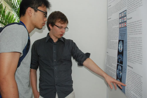 会议还安排了由所磁共振成像中心与科研处合作组织的所内科研成果展览。展览以海报形式向海内外来宾展示了所内近些年在脑功能影像分析方法、决策的神经机制、语言等方面取得的科研成果,增加了所内师生与海内外学界同仁的交流。来自德国慕尼黑大学的代表团也展出了他们在考察社会认知与艺术审美的神经机制方面的最新研究进展。