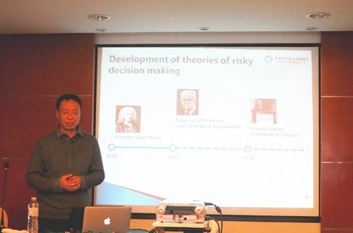 在题为“Is Risky Choice Actually Guided by an Expectation-maximization Rule?”的报告中,李纾研究员介绍了其研究组近些年来的研究成果,包括依据期望法则假设的概率函数推导、加权过程、求和过程、总分最大化等步骤,借助行为实验、眼动记录法、事件相关电位、功能磁共振成像等技术,系统探索风险决策的心理和神经机制,为回答“风险决策是否遵循补偿性规则”这一问题提供了汇聚性证据,并展望了今后的研究方向。在会议的交流阶段,李纾研究员同与会的专家学者、学生们进行了讨论,并提出了具有建设性的意见。