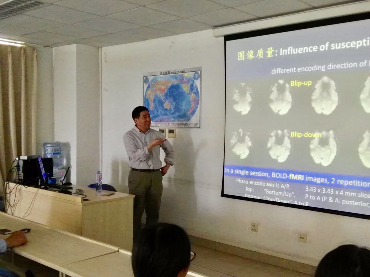 黄瑞旺教授在磁共振物理及脑功能成像研究方面有着丰富的实践经验,他详实又生动的报告,引发了在座师生的极大兴趣。多位师生就可重复性问题、图像质量控制等方面的合作与黄瑞旺教授进行了深入讨论。