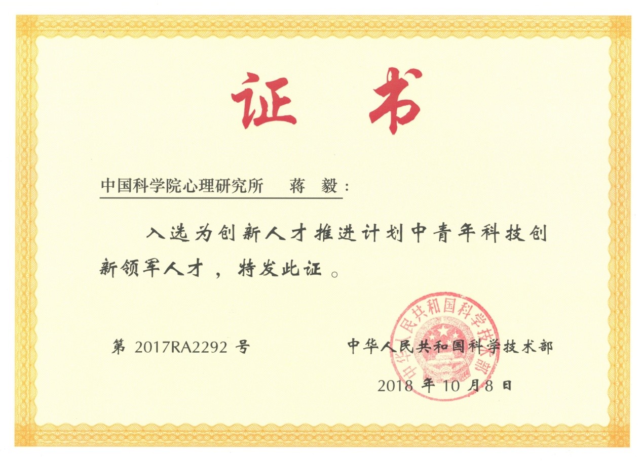近日,科技部公布了2017年创新人才推进计划入选名单。经申报推荐、形式审查、专家评议和公示等环节,共计323名中青年科技创新领军人才、54个重点领域创新团队、212名科技创新创业人才和30个创新人才培养示范基地入选。永乐汇研究员蒋毅成功入选中青年科技创新领军人才,这是心理所科研人员首次入选该计划。