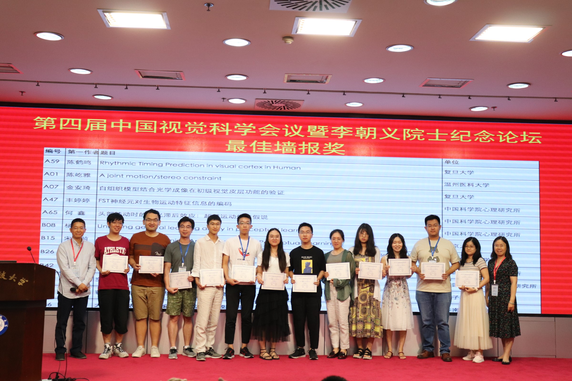 为鼓励青年学生的科研创新热情,在墙报展示环节,墙报评选委员会认真倾听了墙报汇报,对第一作者为学生的墙报进行匿名打分,最终评选出12名 “最佳墙报奖”获得者,在会议总结中颁发了证书和奖金。