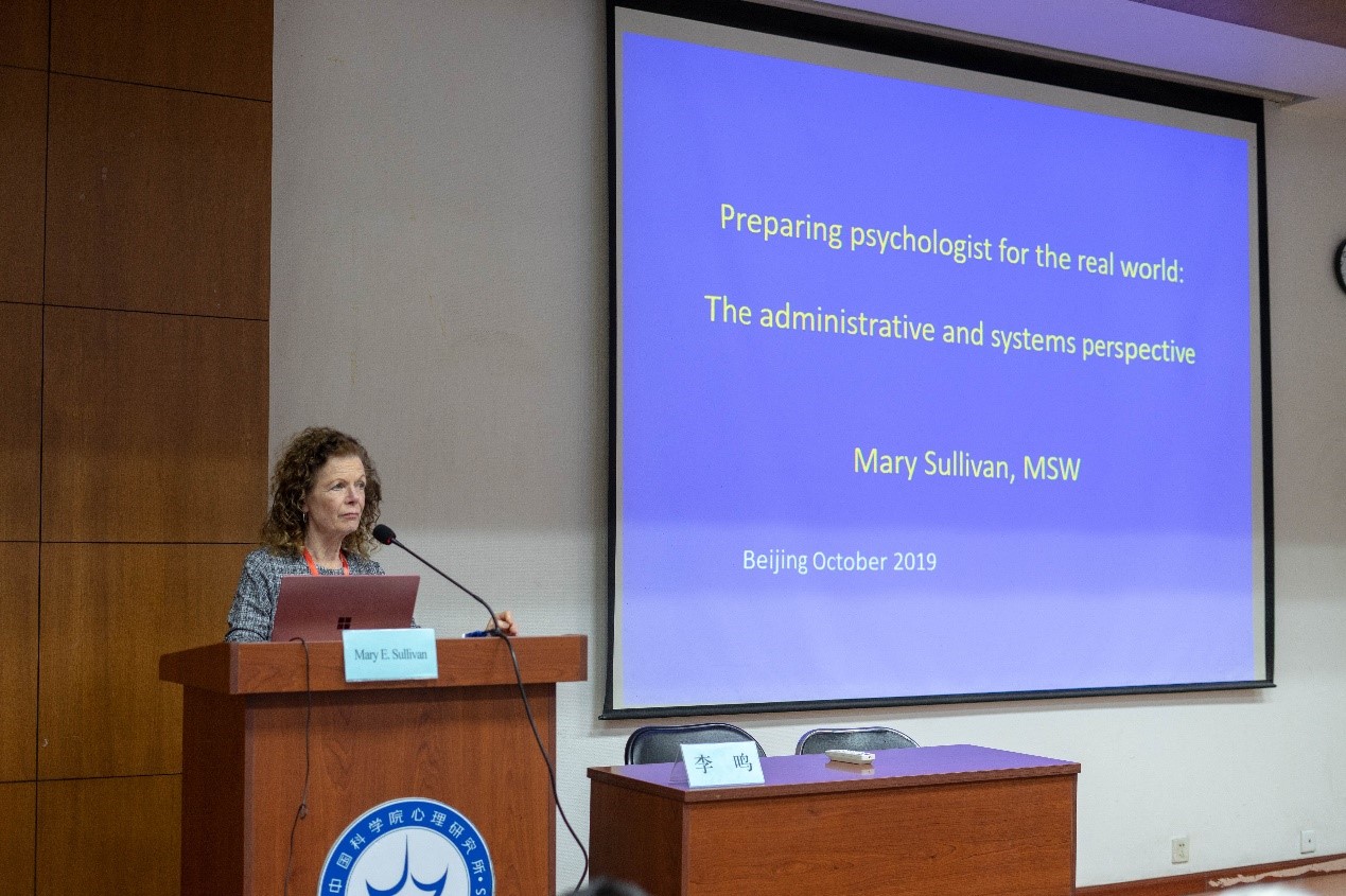Mary Sullivan作了题为“心理学家对现实世界的准备:管理和系统视角(Preparing psychologists for the real world: The administrative and system perspective)”的特邀主题报告。她认为,在精神疾病的康复过程中,治疗团队与研究团队的合作和组织至关重要,一个完善的临床心理学研究项目实施应当由科学问题起始,建立关系良好的团队,依托稳定的机构,通过委员会的伦理审查与监督,充分关注研究与治疗中的细节问题等。