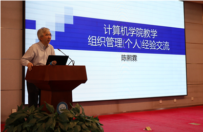 陈熙霖从学情与教情、组织与培养、实践与创新等方面介绍计算机学院的教学组织管理情况,并从亲身经历出发分享了本科工作的宝贵经验以及学院建设“从无到有”的酸甜苦辣。他强调本科生培养与研究生培养存在差异,本科生教育应立足长远发展、重视教学培养的连续性和系统性。