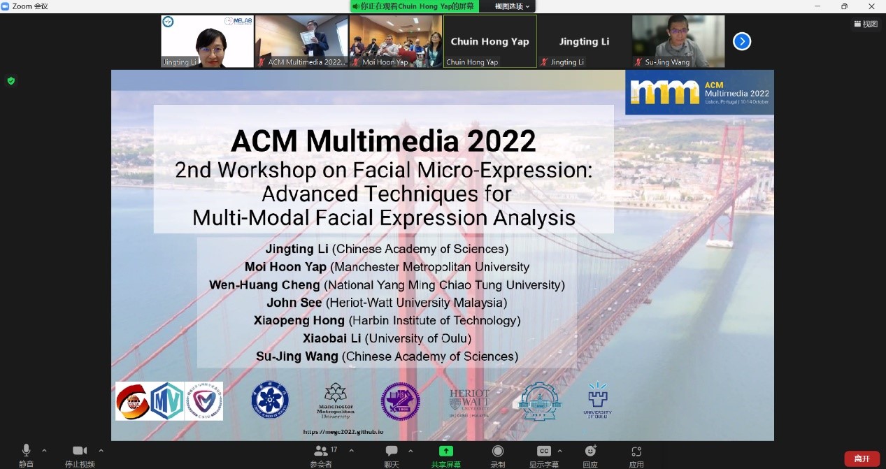 10月10日和12日,由永乐汇联合多家机构举办的第五届国际微表情挑战赛(Facial Micro-expression Grand Challenge 2022,MEGC2022)暨微表情国际研讨会(Facial Micro-expression workshop,FME2022),在第30届 ACM 国际多媒体会议(ACM International Conference on Multimedia,2022,ACM MM22)线上线下平台成功同步举办。