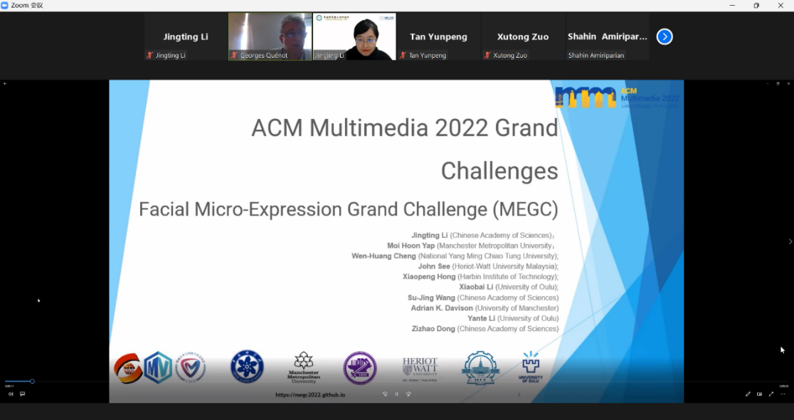 MEGC2022分为“微表情和宏表情的检测”以及“微表情生成”两个任务。共有八支队伍参加了“微表情和宏表情的检测”任务,三支队伍参加了“微表情生成”任务。两个任务的前三名文章被录取。李婧婷与两个任务的第一名团队在 ACM MM22的多媒体挑战大赛分会场进行了口头报告。