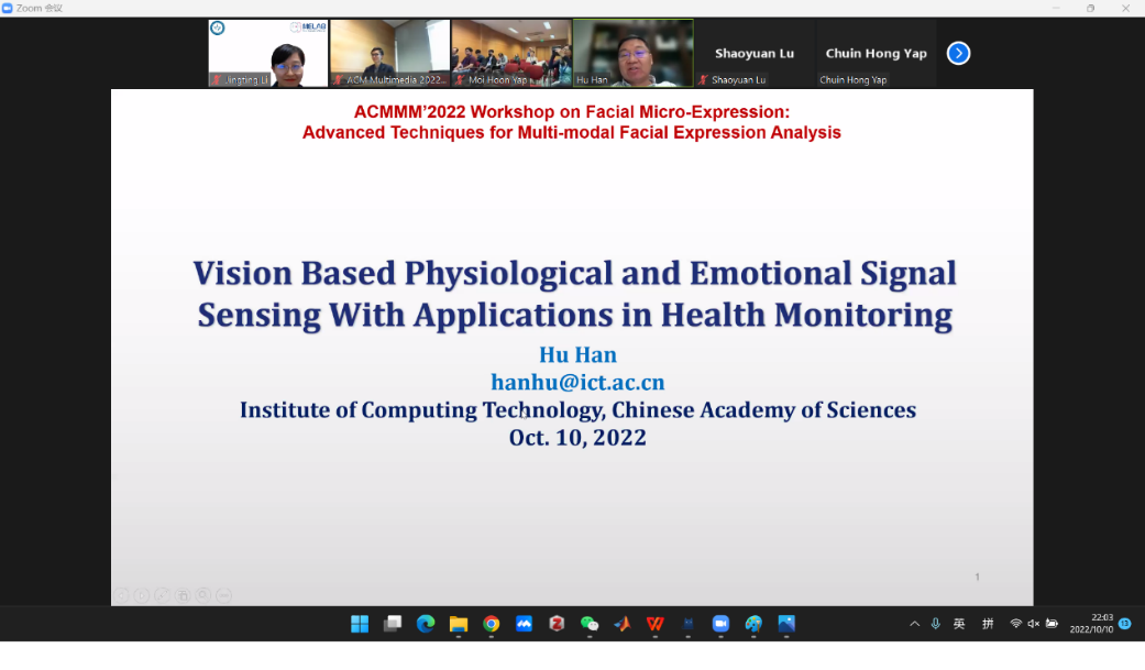 FME2022还邀请了中国科学院计算技术研究所研究员韩琥作主旨报告“Vision Based Physiological And Emotional Signal Analysis With Application To Mental Disorder Diagnosis”。