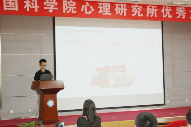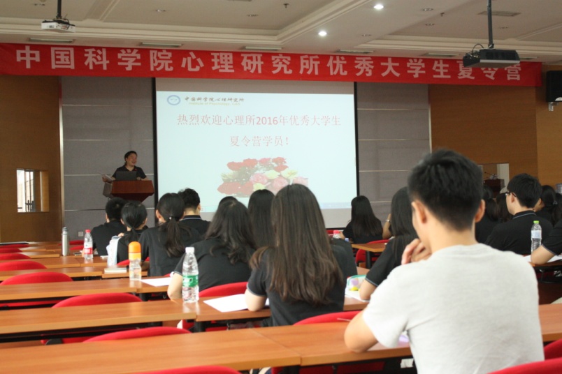 7月18日上午,心理所2016年优秀大学生夏令营正式拉开了帷幕。开营典礼由党委书记、副所长孙向红研究员主持。典礼伊始,所长傅小兰研究员致辞,与营员们分享了她在硕士毕业后来到心理所攻读博士学位直到工作至今的心路历程,也对在座的优秀大学生来到心理所表示欢迎并给予了殷切的期望和诚挚的祝福。孙向红简要介绍了心理所的情况,包括组织结构、导师数量、硕士生与博士生数量、学生毕业去向、近年来心理所获得的成果等。来自华中师范大学的梁柏燊作为学员代表分享了自己学习心理学的经历以及自己对心理学研究的兴趣及热情。罗非研究员为学员们做了健康与遗传心理学研究室情况以及健康心理学研究前沿与趋势介绍。王锦琰副研究员分别从心理学研究的理论与技术两个层面,与学员们分享了如何成为优秀的研究生。