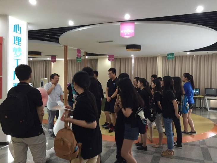 22日上午,夏令营安排学员参观了公用实验室,包括ERP实验室、虚拟现实实验室、人类行为观察实验室以及生理学实验室等。除了专业的实验室,学员还参观了心理梦工厂,这是一个非常有趣的心理学科研成果展示平台,主要对青少年群体进行心理学知识的普及。