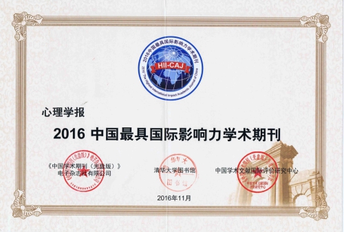 11月22日,由中国科学文献计量评价研究中心和清华大学图书馆研制、中国学术期刊(光盘版)电子杂志社有限公司出版的《中国学术期刊影响因子年报(2016年)》和《中国学术期刊国际引证年报(2016年)》在京发布。《心理学报》和《心理科学进展》入选“2016中国最具国际影响力学术期刊”。其中《心理学报》名列人文社科类期刊中的第3名(前2名是英文的SCI/SSCI期刊),在中文人文社科类学术期刊中排名第1。