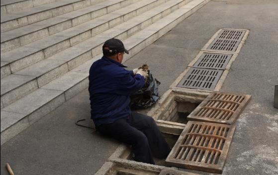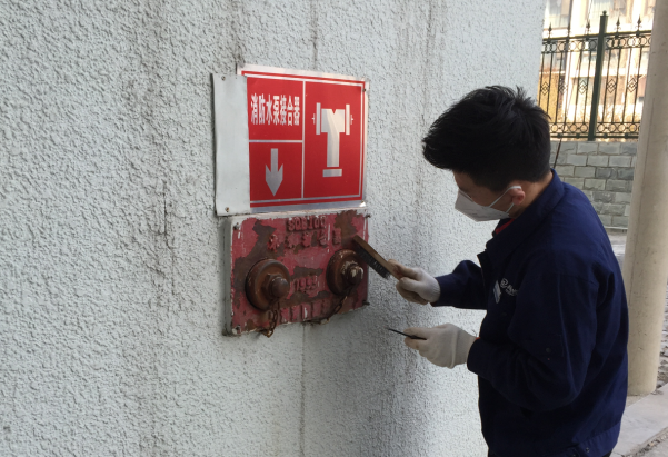 工作人员清理杂物和维修消防设施