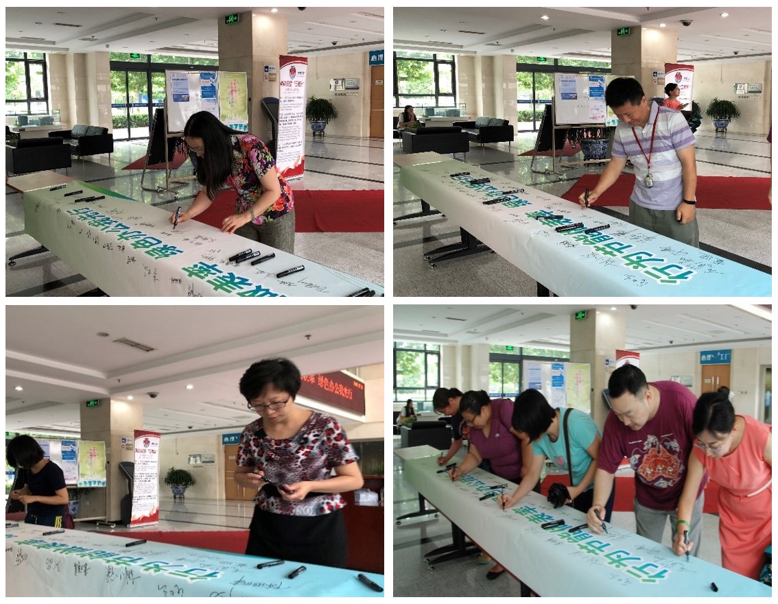 活动当天,连续不断的降雨挡不住心理所全体师生积极参与节能环保活动的热情,大家纷纷在环保签名横幅上郑重写下自己的名字。活动期间,心理所各办公楼大厅分别放置环保倡议书,依照节能环保的法规条例,宣传倡导绿色、节能、低碳环保的办公方式、消费模式和生活习惯,培养全所师生养成良好的节能环保习惯,强化资源忧患意识和节约意识,营造浓厚的节能环保氛围。
