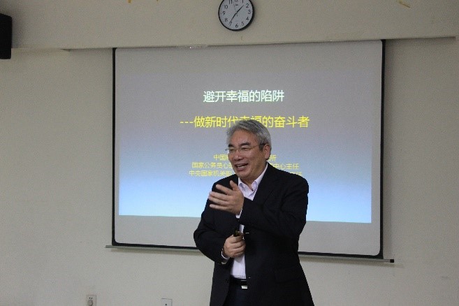 刘勋在下午的开场讲话中提到,继续教育与培训是提升在职职工学习能力、实践能力和创新能力的一个重要抓手。管理支撑部门是服务科研的重要职能部门,管理支撑队伍是研究所发展的中坚力量,希望大家充分发挥院所继续教育平台的作用,树立终身学习的理念,提高服务科研的水平。随后,心理所国家公务员心理健康应用研究中心主任祝卓宏教授作了题为《避开幸福的陷阱——做新时代幸福的奋斗者》的报告。报告从工作中压力和焦虑的来源、怎样改变错误的认知和五种应对技术三个方面进行了阐述,并带领职工亲身体验了减轻压力的腹式呼吸法。