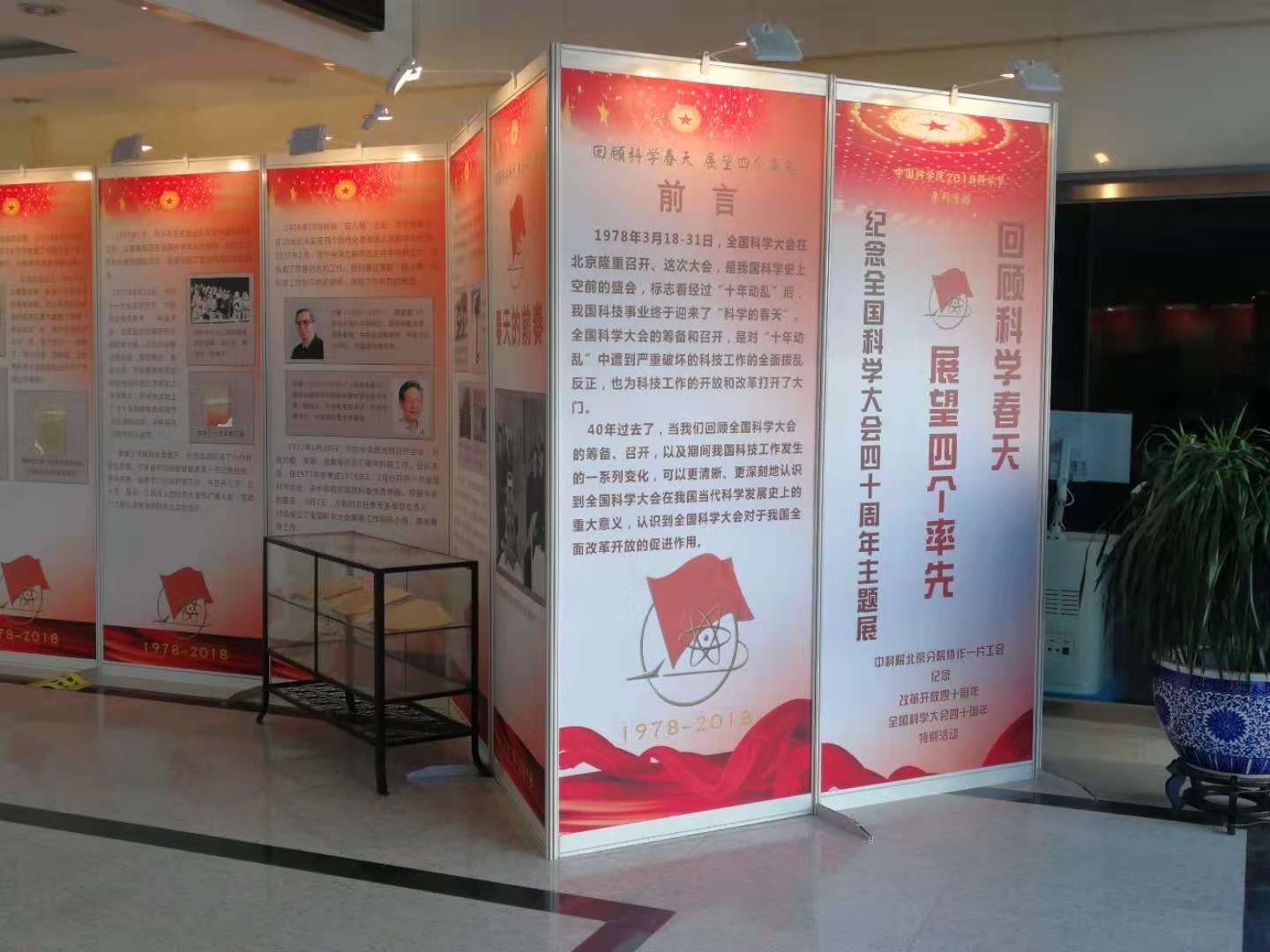 10月28日,“回顾科学春天,放眼四个率先——纪念全国科学大会40周年主题展”在永乐汇和谐楼一层大厅正式开展。本次展览是中国科学院北京分院协作一片工会为纪念我国改革开放40周年和全国科学大会召开40周年所举办的特别活动。