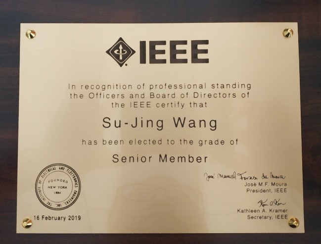 王甦菁副研究员2017年当选为中国计算机学会(CCF)高级会员后,继续在微表情识别领域进行深入研究。2018年,以王甦菁为第一完成人的项目《微表情识别方法》获得吴文俊人工智能科学技术奖自然科学一等奖。此次当选为电气和电子工程师协会(IEEE)高级会员,是对其专业造诣以及长期以来对微表情识别领域发展所做贡献的肯定。