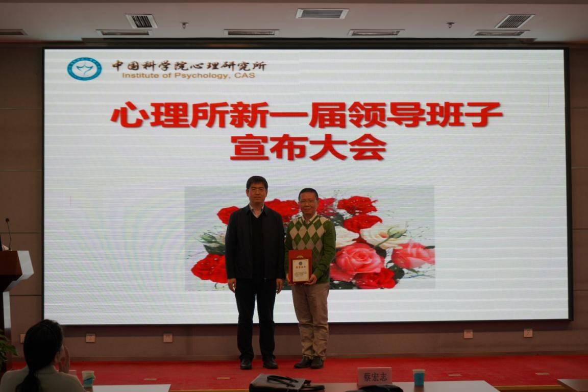 蔡宏志宣读了《中共中国科学院党组关于傅小兰等同志职务任免的通知》:经研究,决定傅小兰同志任心理研究所所长;孙向红、陈雪峰同志任心理研究所副所长;刘斌同志任心理研究所纪委书记;免去刘勋同志心理研究所副所长职务,保留副局级;免去陈雪峰同志心理研究所党委副书记、纪委书记职务。蔡宏志指出,心理所上一届领导班子党政配合、团结协作,积极贯彻落实“率先行动”计划,认真组织实施“一三五”规划,稳步推进特色研究所建设,在心理疾患的识别与干预、感觉信息整合及其脑机制、社会心理服务与精细化社会治理等方面取得重要成果,同时在科教融合、国际合作、党建创新、文化建设等方面也取得了较好的成效。本次班子换届,刘勋同志不再担任研究所领导职务。为感谢刘勋同志在副所长岗位上的辛勤付出和作出的重要贡献,蔡宏志受院党组委托,为刘勋同志颁发了学术副所长聘书及荣誉证书。