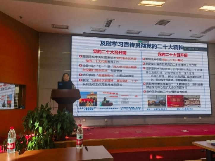 会上,党委书记孙向红代表研究所领导班子作2022年度工作报告。孙向红从党建引领科研、科研进展、人才队伍建设、科教融合、应用服务和综合管理六个方面介绍了2022年重点工作进展,分析了当前工作中存在的突出问题,并提出2023年重点工作。2022年,心理所认真学习贯彻落实党的二十大精神,按照中科院党组部署和要求,聚焦主责主业,真抓实干,锐意改革,对标新时代要求,进一步凝练科学目标,推进全重重组工作,落实“基础研究十条”要求,积极承担重要科技任务,统筹推进各项工作全面协调发展,研究所各项工作取得新进展。2023年,心理所将继续坚持和加强党的领导,落实全面从严治党要求;深入推进全国重点实验室申建,创新科研单元组织模式;强化人才队伍建设,聚焦建制化培养与精准引进,优化科技绩效评价与激励机制;加强科教融合,推进优质教育体系建设;加快推进相关平台建设。
