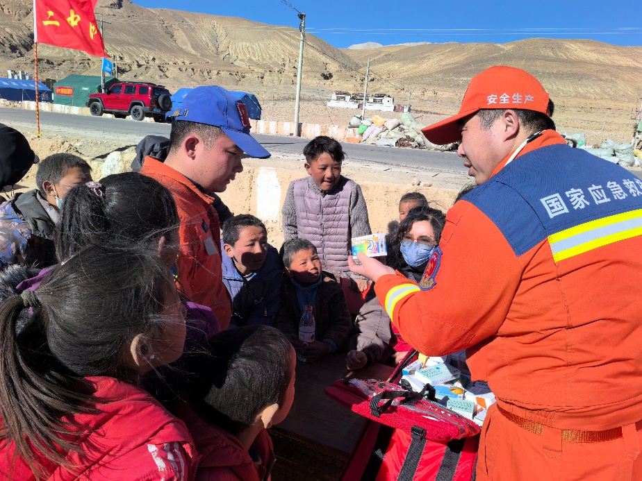 1月10日,应急心理救援队在前方与国家应急医学救援队汇合并开展联合行动,分别为因高原反应在定日县人民医院接受治疗的救援队员、安置点备勤的消防指战员提供医学支持和心理支持,在日喀则定日县长所乡嘎旦村、曲洛乡措昂村为当地儿童青少年开展2场以表达性艺术治疗和运动为主的团体心理辅导。
