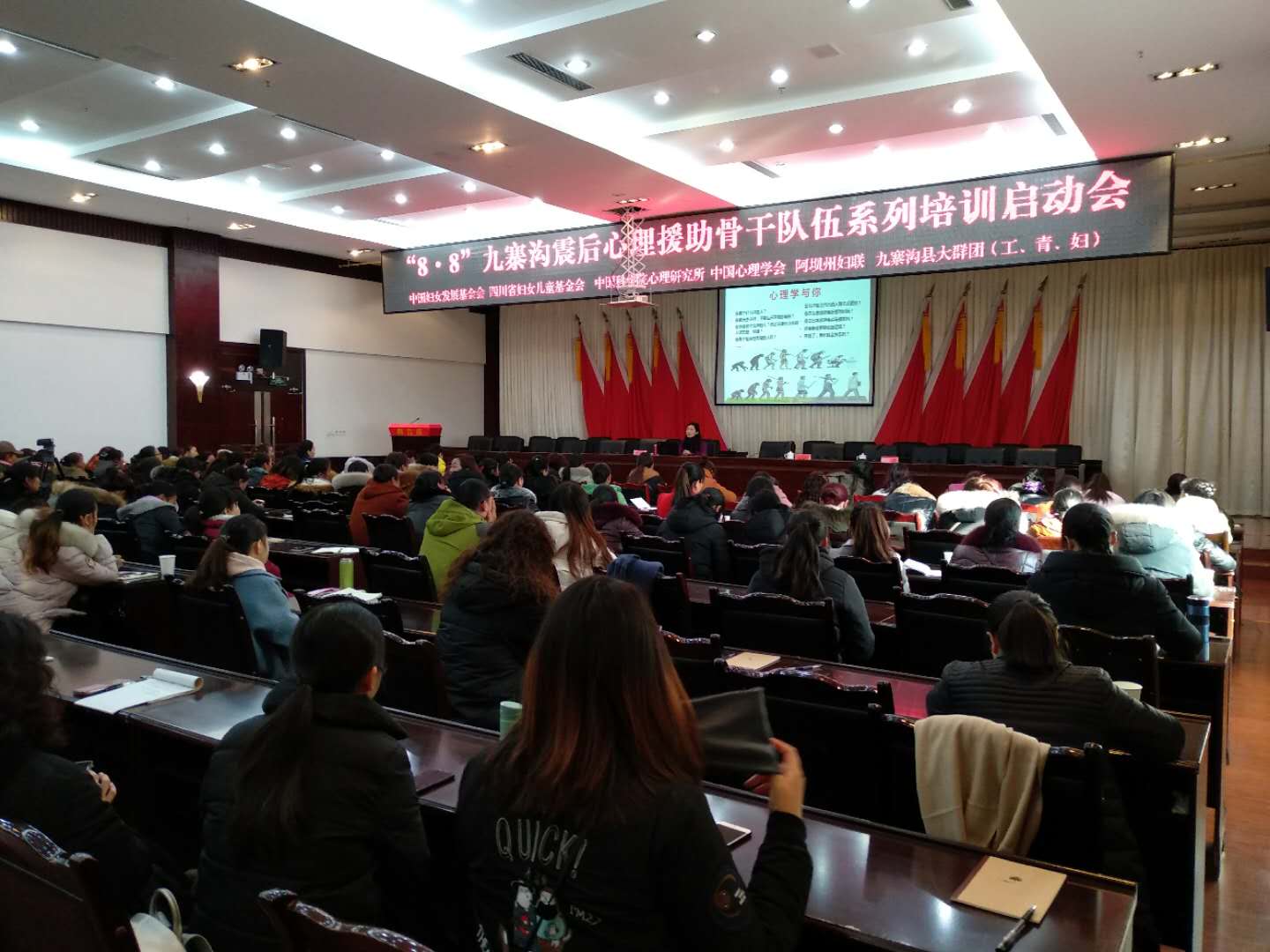 2月5日,永乐汇全国心理援助联盟在中国妇女发展基金会、四川省妇女儿童基金会、阿坝州妇联和九寨沟县大群团(工青妇)的支持下,在四川省阿坝州九寨沟县联合开展“8?8”震后心理援助骨干队伍系列培训,该系列培训旨在促进当地组建心理援助妇女干部骨干队伍,科学引导当地心理援助工作实现可持续发展。四川省妇女儿童基金会秘书长徐丽娜、九寨沟县人民政府副县长、妇儿工委办主任陈志敏、九寨沟县妇联主席徐兰、心理所全国心理援助联盟副主席、应用发展部主任张莉和联盟秘书长吴坎坎出席本次启动会,来自九寨沟县妇联、共青团和教育系统的120余人参加启动会。
