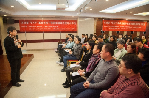 樊富珉教授运用生动有趣的现场互动,丰富的个案实例,加上极富感染力的表达,带领志愿者逐步领略团体辅导的魅力与精髓,通过团队建设、探寻压力源、脑力激荡、寻找资源、图说灾难、互助分享等方式,让大家在体验和感悟中习得心理团体辅导的技能,从内心感受到团队的能量所在。参加培训的一位心理咨询师说到,“在8·12爆炸事故后,我一直在不停地工作,没有时间和机会去沉淀情绪,今天有这样一个机会和温暖的氛围,使我的压力和情绪得以释放,我感到很轻松,同时也能够轻装上阵更好地去帮助别人,做一个内心强大的助人者。”
