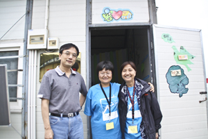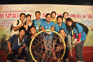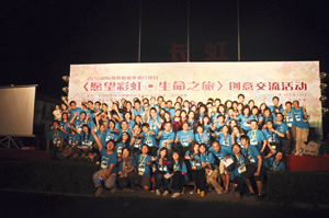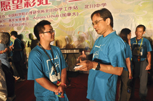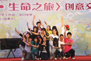 晚会结束时,中、港、加三地团队集体留念 张建新副所长与工作站队友及学生志愿者合影留念 九.张建新副所长亲临活动现场,探望工作站的驻校团队和北川中学学生志愿者