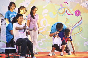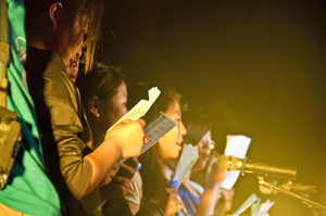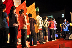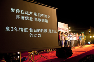 512地震之后,北川中学临时校园曾举办过无数大型晚会,但绝大多数都是精英表演,老师和同学只有观看的份。而这一次创意晚会的主角是每一位参与的同学和老师。高三同学将三天工作坊中的集体创作以晚会形式呈现出来,分享集体的生命故事,表达对母校的祝福。学校领导、老师,以及2011届(高二)全体同学应邀参加。