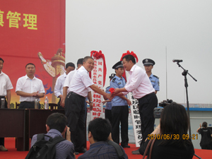 史占彪博士在仪式现场 为永昌永兴板房政府和党委授牌