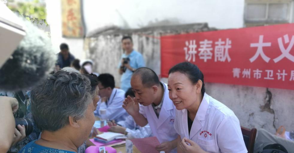 在青州王坟镇开展联合义诊的现场