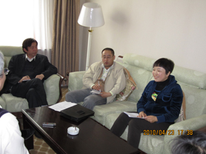 与青海省卫生厅心理援助办公室主任李令暹、青海省第三人民医院院长杜欣柏以及青海省妇联儿童工作部部长王瑞菊举行会谈。