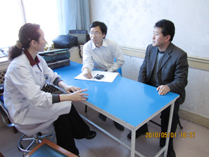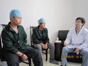 史占彪与两位玉树地区大学生志愿者交流 省妇儿医院孟主任、省三院廖大夫与我所专家在一起