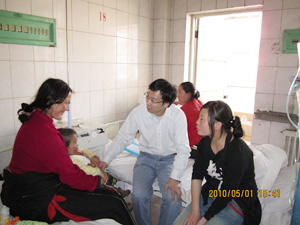 史占彪、付春胜与康巴语志愿者座谈 史占彪在省妇儿医院与丧亲母子做辅导